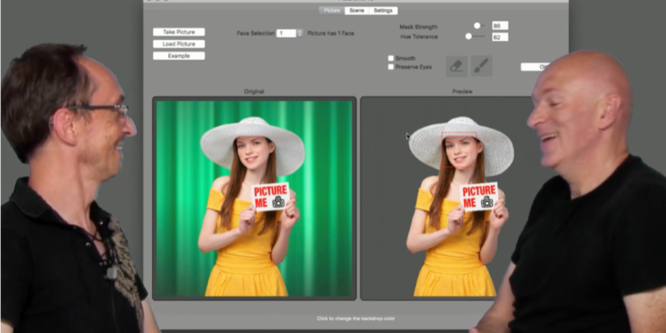 This was the chance to introduce PictureMe, a software that adds in just second a custom backdrop to your pictures.